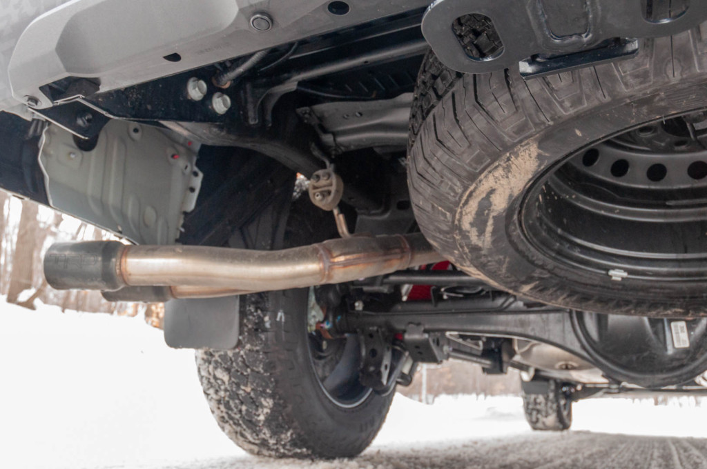 It’s hard to believe there’s a 3.5-liter twin-turbo V-6 under the hood. A surprisingly deep, guttural burble emits from the TRD exhaust system upon cold start that sounds like it’s just one octave higher than a V-8. The exhaust note quiets down after a few seconds, but still sounds deep and rich. If you listen closely while driving, it’s pretty easy to hear the turbos spool up and then blow off as you dip into the throttle and let off. I dig it.