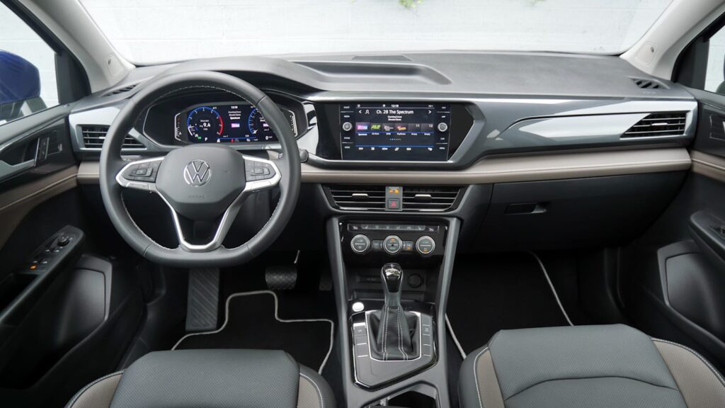 Front-wheel drive is standard and is paired with a traditional eight-speed automatic transmission. All-wheel drive is paired with a seven-speed dual-clutch automated manual (aka DSG). Though you may notice some slight differences in their behavior, they’re basically just automatics that shift smoothly as expected. Fuel economy with FWD is 28 mpg city, 36 mpg highway and 31 mpg combined. With AWD those drop to 25/32/28, but the Taos is nevertheless one of the most efficient midcompact SUVs. It’s also worth noting that its total range is over 400 miles.