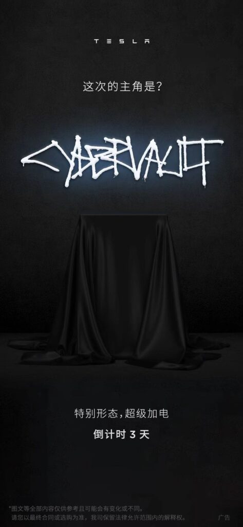 Tesla China recently posted a teaser on social media for something called the “Cybervault” that will debut on April 3. According to Teslarati, the Chinese text on the poster reads, “Cyber-enhanced, balancing commuting and traveling; A technological appearance, fully meeting your expectations; This time, our protagonist is ___ ; Only 3 days left until the reveal.” All we can say is… WTF?