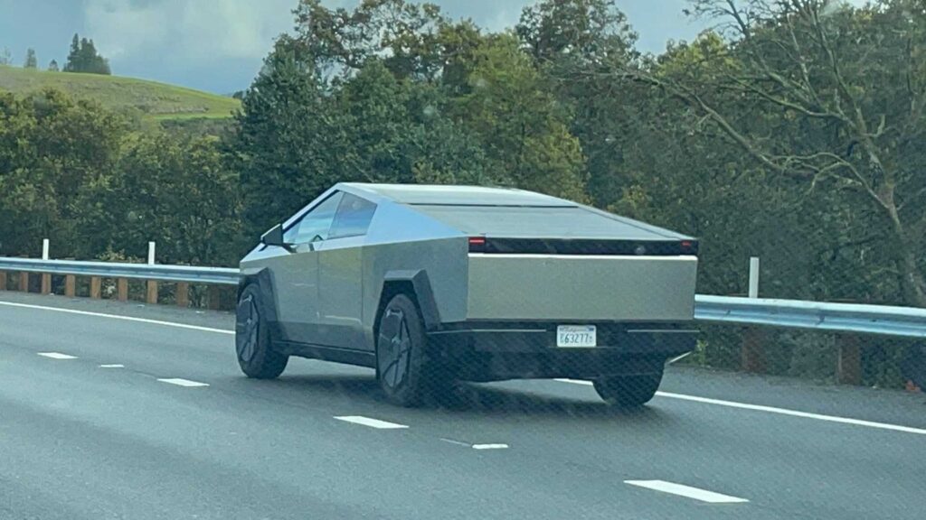 Thankfully, it seems they won’t be waiting too much longer. An increasing amount of Cybertruck beta sightings have been reported on social media in recent weeks. One Twitter user posted several images of a prototype Cybertruck they spotted in California. While other Cybertruck prototypes featured exposed all-terrain tires this one had all-season wheels with Aero covers. It also had fixed side mirrors and functioning rear tail lights.