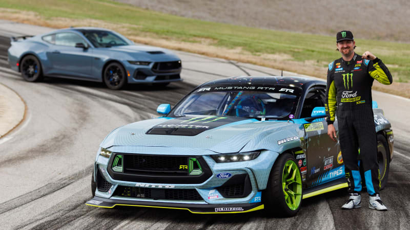 The 1,300-horsepower Spec 5-FD will also be the archetype for buyers of the street-legal 2024 Mustang to emulate: Ford worked with Gittin and RTR team driver Chelsea DeNofa to develop a competition-ready electronic drift brake buyers can option for the retail car. We don’t have much for nitty gritty yet on how it all works. We know that the system operates in track mode in the new Mustang, pulling a handle that’s like a mashup of drift lever and old-fashioned mechanical parking brake activates the rear-wheel drift action. Ford says pulling the handle “emulates with electronics the hydraulic drift brake in RTR’s Formula Drift Mustang, with more than three times the braking force of a conventional mechanical parking brake system.”