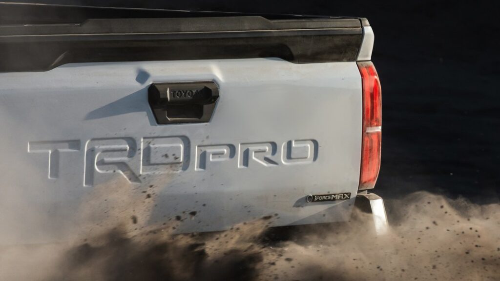 The tail of the Tacoma in the teaser has a badge that says “i-Force MAX,” which is the name for the Tundra’s twin-turbo hybrid V6. And Toyota’s accompanying press release for the teaser calls the engine “electrifying.” It’s pretty obvious hybrid power is headed for the Tacoma. But it does leave us wondering if it will be a variant of the Tundra’s hybrid V6, which would seem a bit overkill for a small-ish truck. Maybe it’ll be a hybrid V6 sans the turbos, or perhaps a turbo four-cylinder hybrid. And it does leave the question of whether there’s only one hybrid engine option, or multiple.