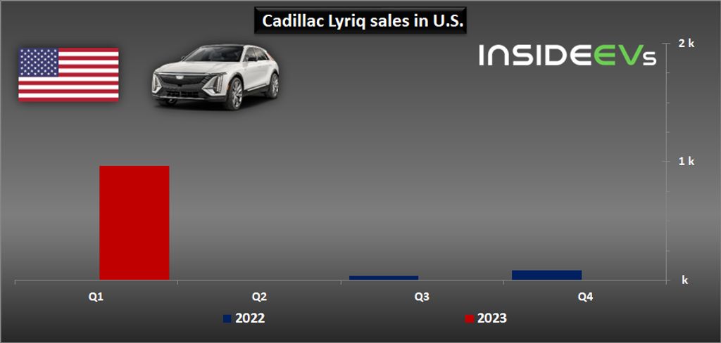 In Q1, the company delivered 968 Lyriq, which is an order of magnitude more than in Q4 2022 (86) and Q3 2022 (36 units). That’s about 2.7 percent of the brand’s total volume.
