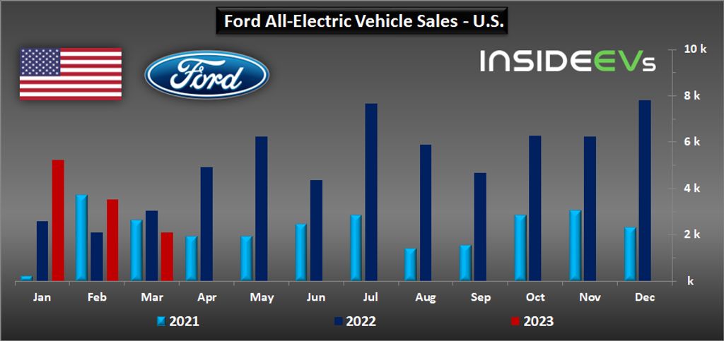 In the case of the Ford Mustang Mach-E, sales decreased in March to 998 (down 58 percent year-over-year), which is the lowest level since January 2021.