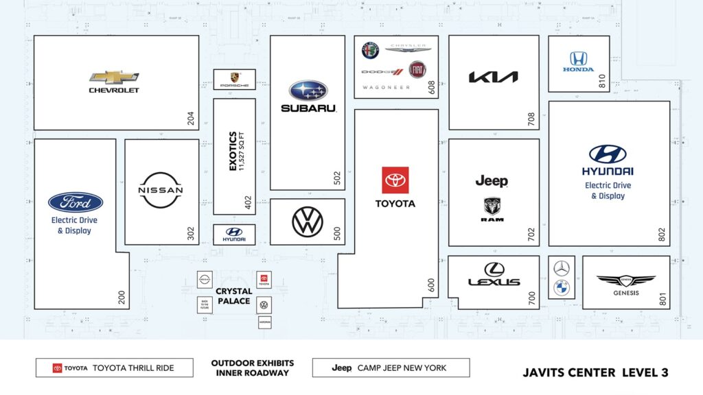 The show is once again at Javits Center. The exact address is 429 11th Ave, New York, NY 10001. There are two main exhibit areas. On the third level is where the major car manufacturers will be showing off their vehicles. On the first level is an area to go for rides in EVs along with other stands showcasing classic cars, modified cars and more.