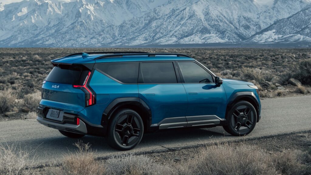 Nothing changes for the U.S. as it concerns the single-motor EV9 options. The Long-Range RWD version still comes with the big 99.8-kWh battery pack — Kia is targeting 300 miles of range with this model, but final EPA certification is not complete yet. The base model comes with a smaller 76.1-kWh battery pack and a single motor producing 215 horsepower. Range estimates for this model aren’t yet available.