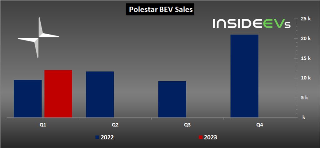 Polestar announced that its global electric car deliveries during the first quarter of 2023 amounted to approximately 12,000 units.
