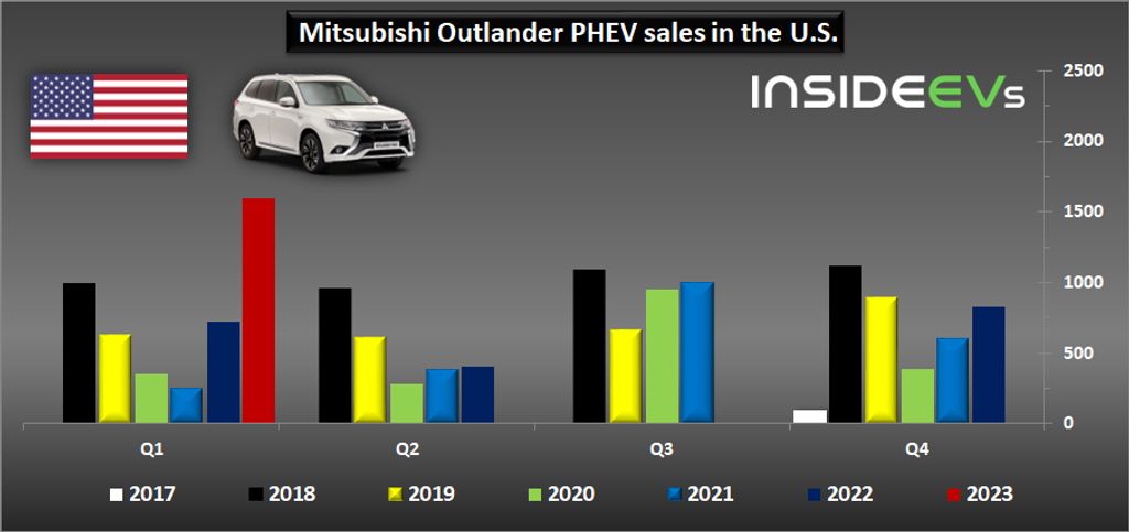 In Q1 2023, some 1,597 were sold, which is 122 percent more than a year ago, and a new quarterly record. Also, the share of the Outlander PHEV out of Mitsubishi’s total Outlander sales increased to the highest level of 7.6 percent.