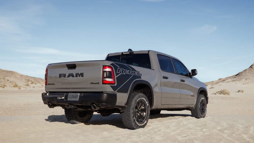 As for the Ram 1500 Rebel Lunar Edition, the formula is similar. Ram paints it in the same Ceramic Gray exterior, but it doesn’t get the neat Surf Blue interior stitching. Instead, Ram uses gray-colored stitching as a hint of contrast to the otherwise all-black interior. It comes with Rebel graphics all over, black badging and 18-inch gloss black wheels. Similar to the TRX, the Rebel Lunar Edition is only available in the Level 2 equipment group, so it’s fitted with a bunch of luxurious add-ons as standard. The 5.7-liter eTorque V8 engine is also the only available powertrain. The Rebel Lunar Edition starts at $72,205.