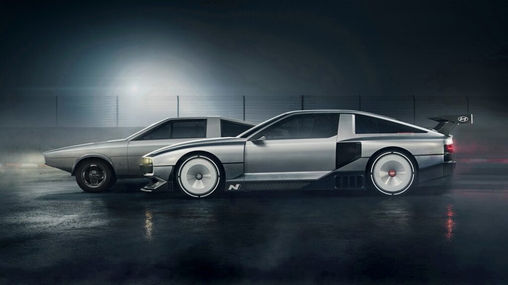 The N Vision 74 is also the rare opportunity for Hyundai to showcase its history, which in the United States is limited. The company legitimately has a concept car in its archives designed by the same guy who did the Delorean and BMW M1. Not everyone can say that. Actually, hardly anyone can. A Giugiaro design means something, and reportedly Giorgetto’s son is involved with the new project. Hyundai has leaned into its Pony heritage in recent years, announcing plans to rebuild the concept last year in partnership with Giugiaro. The Pony concept influenced Hyundai design throughout the 1970s and ’80s, and some of its elements appeared on the rear-wheel-drive Pony hatchback. Hyundai has also cited the concept’s lineage in its electric hatch, the Ioniq 5. The original 1974 concept was destroyed.