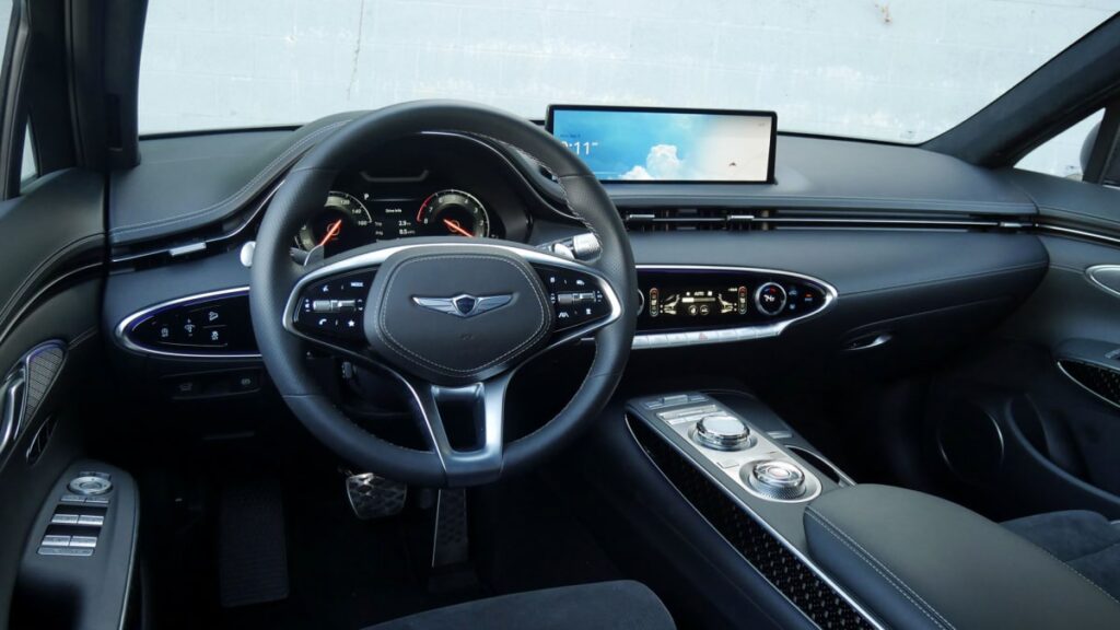 That the GV70 isn’t as sporty as it looks is not the worst problem to have, and indeed, things are pretty much rosy from here on out. The 3.5-liter twin-turbocharged V6 provides smooth, effortless power delivery indicative of bigger, pricier luxury vehicles (like the GV80). Its superlative ride quality greatly exceeds similarly powered German models thanks to an adaptive suspension that pre-emptively adjusts itself using forward-looking cameras. We’d just think twice about the Sport Prestige package as its 21-inch wheels add a touch of nervousness over choppy pavement and some harshness over gnarled pavement.