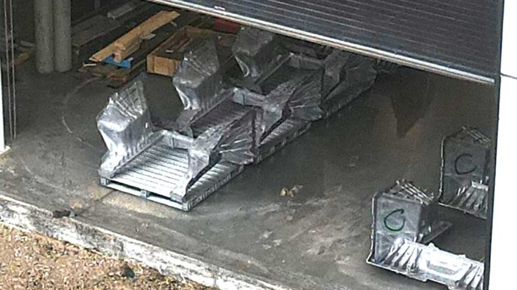 A couple of the huge metal castings have been labeled with a big “C,” hinting at the possibility that they’re intended to be used on the Cybertruck. Furthermore, at closer inspection, it looks like the parts include both front wheel wells and a connecting piece that will presumably be attached to the firewall of the truck.