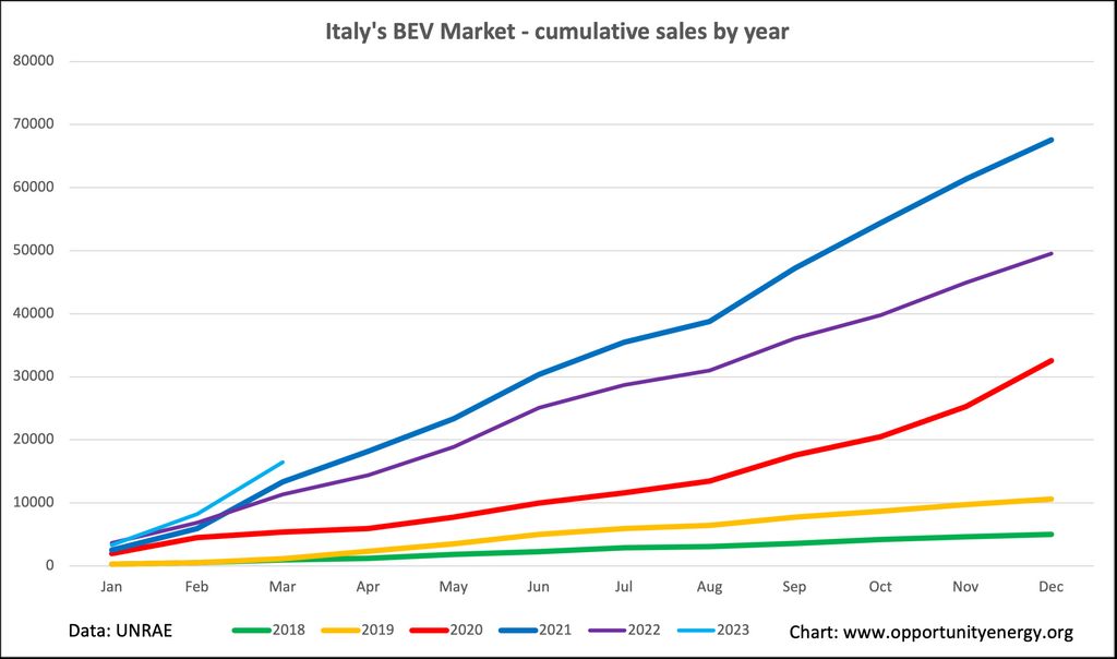 Italy’s shift to electric mobility is experiencing an uncertain path, following what was a very promising exponential growth rate that lasted until 2021. As 2022 proved to be a lost opportunity, much in contrast with other major European countries, 2023 is progressing with rather mixed signals.