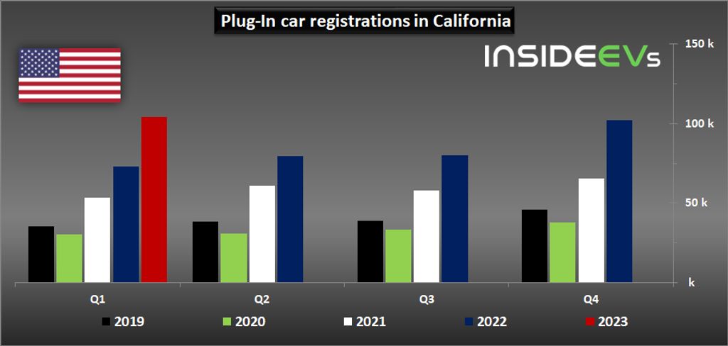 In Q1, some 103,995 new plug-in electric cars were registered (42 percent more than a year ago), which is a new quarterly record (slightly higher than 102,279 in Q4 2022). The market share of rechargeable cars amounted to over 23 percent compared to 17.2 percent a year ago).
