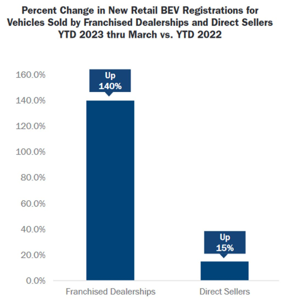 It actually indicates that franchised dealerships are fighting back their market share in the BEV segment, which mostly because of Tesla (later joined by Rivian, Lucid, and Polestar), was dominated by direct sales.
