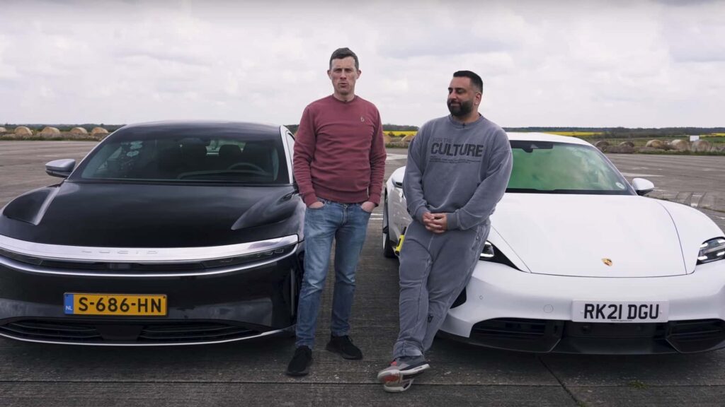 The Porsche Taycan and the Lucid Air are both pioneers in the world of electric luxury performance vehicles, and they both feature high power, lots of technology, and features that will influence the future of the automotive industry. However, they’re quite different, and in a drag race, the two cars pose an interesting rivalry. The Lucid Air, in the Dream Edition Performance version, boasts an incredible 1,111 horsepower, while the Porsche Taycan Turbo S has 761 horsepower in comparison, which is an impressive figure but much less than the Lucid. The Lucid also eclipses the Taycan in torque and is only slightly heavier.