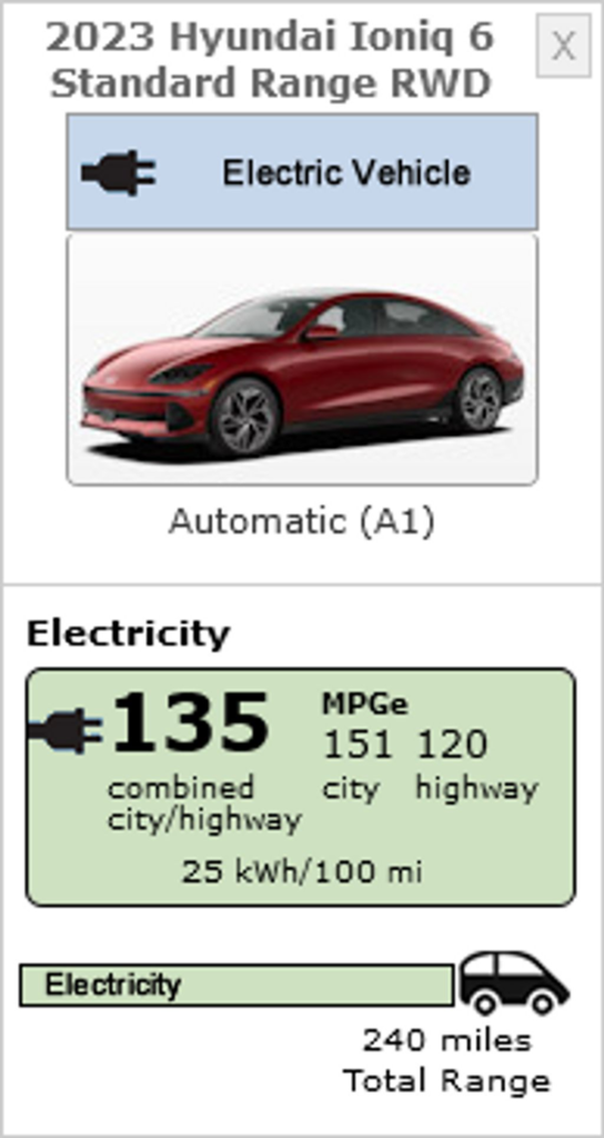| 2023 Hyundai Ioniq 6 SE RWD Long Range 18-inch :: EPA Range rating by InsideEVs [Electric Vehicle 5-cycle label] |