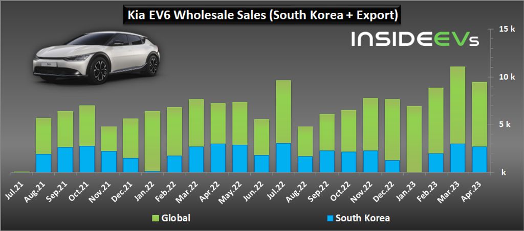 In April, the all-electric Kia EV6 noted 9,421 wholesale sales (closely related to production), which is 30 percent more than a year ago.