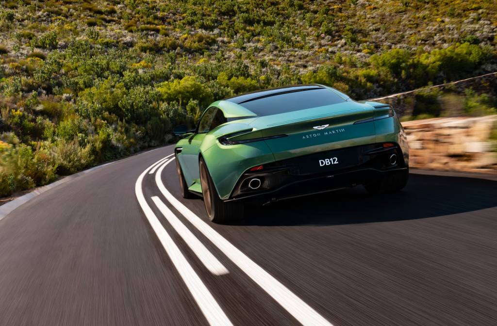 However, while the DB11 offered the choice of V-8 or V-12 power, the DB12, at least for now, has been announced exclusively with the V-8. It’s the familiar turbocharged 4.0-liter V-8 that Aston Martin sources from Mercedes-Benz AMG, and here it’s tuned to deliver 670 hp, or 40 hp more than the turbocharged 5.2-liter V-12 that powered the DB11.