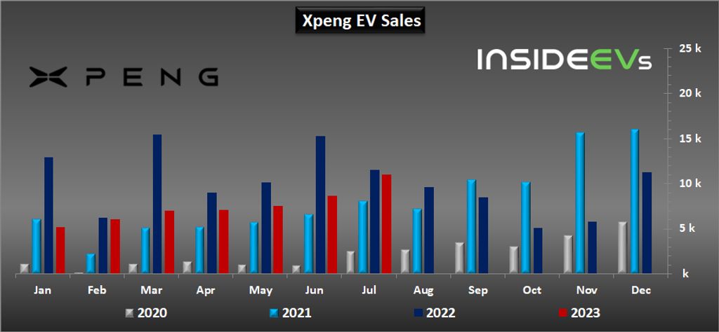 XPeng global electric vehicle deliveries in July amounted to 11,008 units, which on the one hand is a 4.5 percent decrease year-over-year, but on the other hand, is the sixth consecutive month-over-month improvement and the first five-digit result since December 2022.