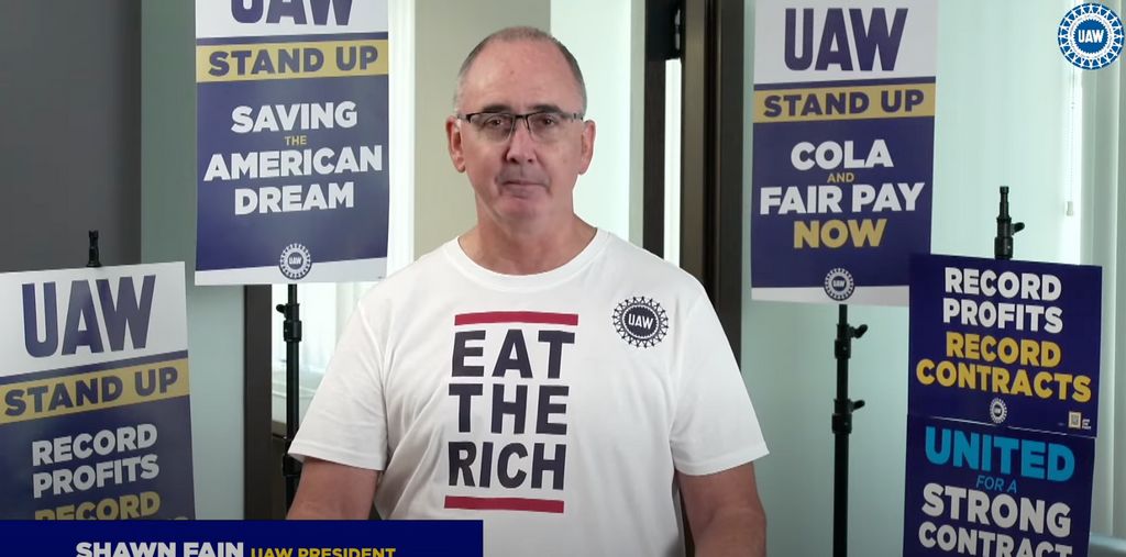 “Moments before this broadcast, we have had a major breakthrough that has not only dramatically changed negotiations, but it’s going to change the future of our union and the future of our industry,” Fain said on his weekly livestream broadcast while wearing an “Eat The Rich” t-shirt.