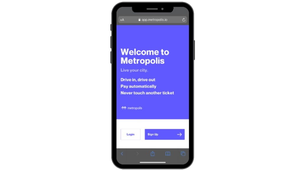 To use a Metropolis parking facility, customers have to provide their name, license plate, phone number and payment method. From an app, they can review their visit and know the price in real time. Metropolis tracks cars and automatically charges the owners, emailing the receipt after they drive out.
