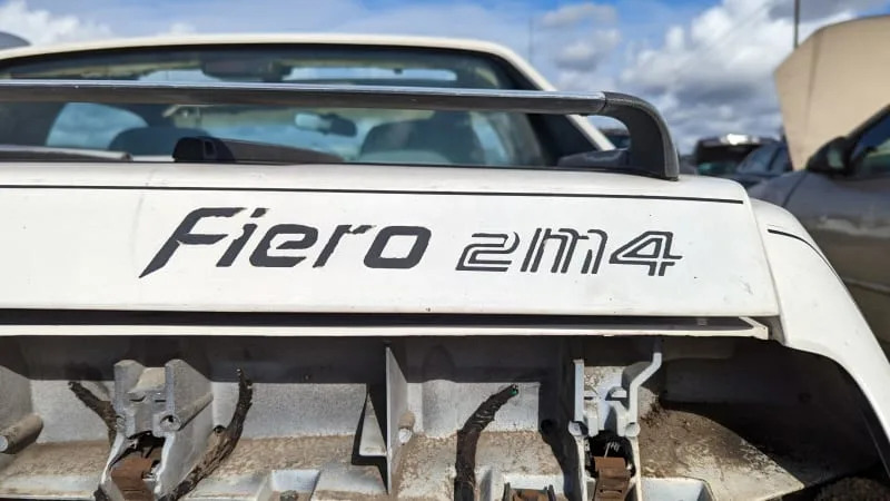 The mid-engined, plastic-bodied Pontiac Fiero two-seater caused great excitement when it hit the streets as a 1984 model, then became something of an embarrassment for GM when its design flaws became clear to the car-buying public. Still, when a V6 engine became available for 1985, followed by a fastback roof for 1986, the air of Pontiac Excitement around the Fiero lingered to a certain extent. We took a look at a discarded ’86 Fiero GT with both the 2.8-liter V6 and the fastback body last year, and now we’ll take a look at an example of the econo-commuter four-cylinder notchback version from the same year.