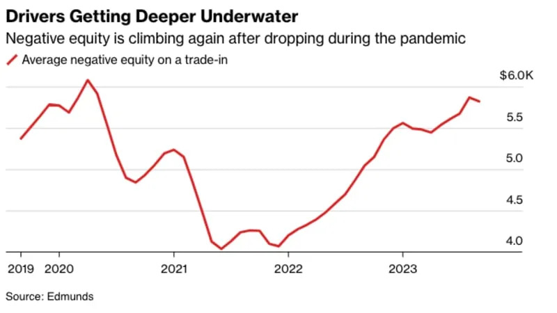 Even though only a sliver of US car buyers arrive at dealerships with trade-ins that are underwater, the rise is creating headaches for dealers and would-be car buyers alike — rolling negative equity into a new loan can be difficult if the amount owed is too high.