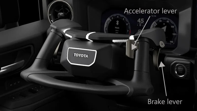 So, what does this mean for the future of Toyota and Lexus? The really obvious potential of Neo Steer is as an accessibility device for people who can’t use foot pedals. And if steer-by-wire becomes more common, it could be a really easy way to offer that extra accessibility, since it could potentially only require different software and a different wheel plugged in to make a vehicle accessible. It would also eliminate bulky hand controls that have to work with existing vehicle inputs. There’s also potential for this system to play nicely with autonomous systems, since you could have all your manual controls packed away neatly in the wheel and retractable for autonomous driving, without having to fuss with pedals. It could even offer more foot room for the driver and more comfortable leg positioning for all drivers, since there wouldn’t be pedals in the way. Steer-by-wire in general, even without the hand throttle and brakes, offers the potential for freeing up space and improving packaging for car parts, people and cargo. There’s even the potential for offering a variety of different steering programs – that are much more varied than today’s common “comfort” vs. “sport” steering settings that largely just change steering effort – to adjust based on personal preference (speed, feedback, etc.).