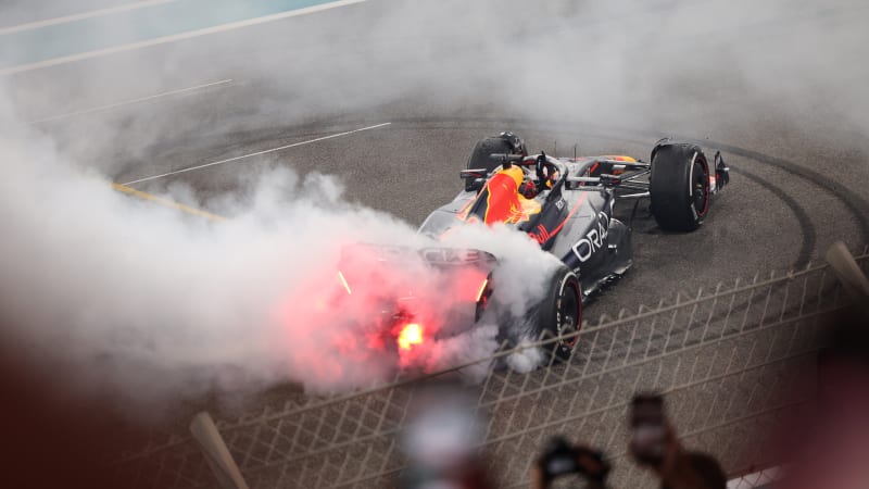 “What an incredible year,” Verstappen said after crossing the line. “It was a bit emotional on the in-lap.”