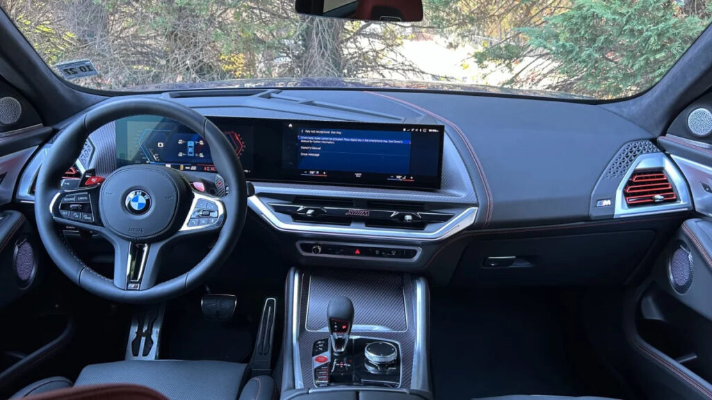 The XM Label’s looks are a big part of what sets it apart from the standard XM, though, and one of the Label’s big pluses is its complimentary BMW Individual paint options. You’ll be able to select between over 50 different alluring paints free of charge with the Label – our particular tester was a truly jaw-dropping Sepia Metallic. But for as good as the outside colors may be, BMW limited the interior options to just a single “Fiona Red/Black” two-tone Full Merino Leather setup. Non-Label versions of the XM offer numerous interior upholstery options, with far more interesting material and color choices, like Deep Lagoon with Vintage Coffee or Sakhir Orange with Black. You’re also locked into a single trim option consisting of carbon fiber with a red weave. All these red accents are paired with red vents and a red “XM” logo in the center stack. The appearance leans heavily toward the performance side of matters, but we can’t help but prefer the more classy and elegant packages available on the non-Label model.