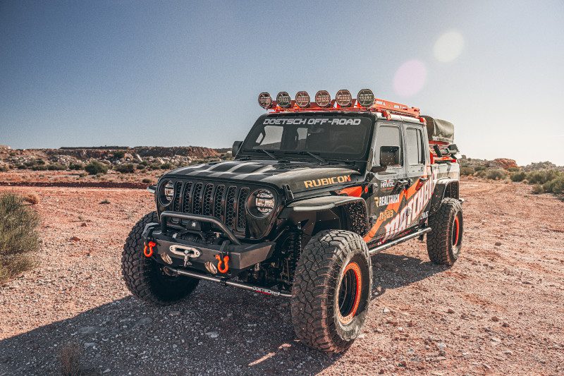 In partnership with Mattel and Matchbox, the stylish and bespoke Jeep Gladiator custom build made its grand debut during the SEMA 2023 and LA Auto Show. Doetsch Off-Road in Chandler, Arizona, turned the iconic 2023 Jeep Gladiator Rubicon into a real-life version of the Mattel Matchbox toy car we all know, bumping it up from a tiny 1:64 scale to a full-sized 1:1 masterpiece. This standout build packs a punch with a 3.6-liter V8 engine and smooth automatic transmission. Decked out with top-notch parts and accessories from RealTruck, this overland dream features a cozy RealTruck Rugged Ridge Roof Top Tent on a RealTruck GoRack, handy RealTruck N-Fab TrailSlider Step System, sleek RealTruck Rugged Ridge Jeep Flush Mount Tail Lights, and plenty more.