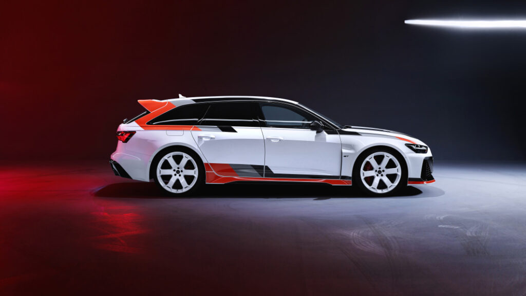Remember the Audi RS 6 GTO concept? Well, it’s here. Just when you thought Audi’s brutish RS 6 couldn’t get any more badass, VW’s luxury subsidiary comes along and one-ups itself. Meet the Audi RS 6 Avant GT — a model limited to just 660 units, of which only 85 will come to the United States. Still interested? Well of course, because it’s a sexy, twin-turbo, V8-powered station wagon that looks like a race car. The GT’s wild appearance is a feature, not a bug. All 85 destined for the USA will be finished as you see here, in Arkona White with the Audi Sport heritage decal package. Let’s take a closer look.
