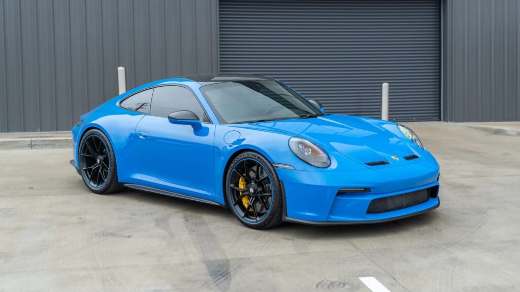 Listed for online auction on Sotheby’s Motorsport, this 2022 Porsche 911 GT3 Touring is a beautiful example. It features plenty of optional extras, like the iconic Shark Blue Color, Porsche Carbon Ceramic brakes, a Front Axle lift system, carbon fiber roof, and more, totaling to over $31,000.