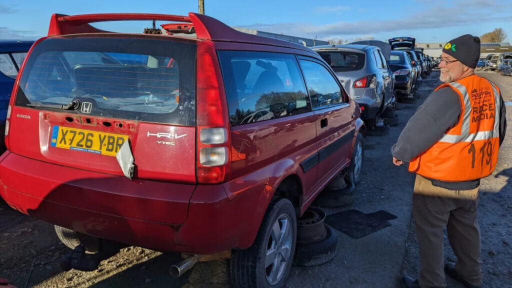 YORK, England — Honda began selling the Fit-based second-generation HR-V in the United States as a 2016 model, but we never saw its first-generation predecessor here. That boxier, shorter machine debuted in Japan as a 1998 model and went on sale in Europe for the 2000 model year. During my recent trip to the junkyards scrapyards of northern England (that’s what they call them here) I found this first-year example at the U-Pull-It in York.