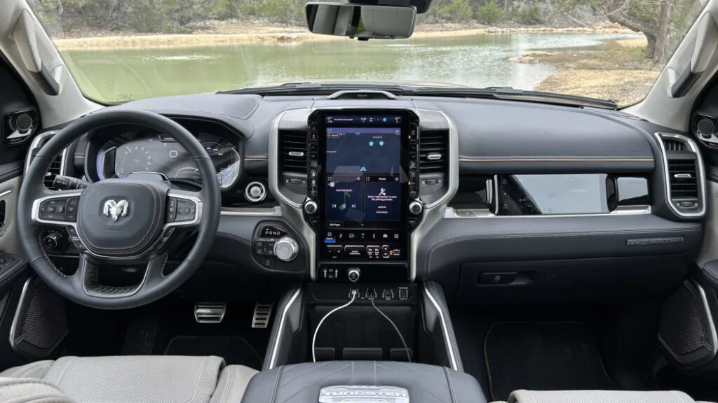 Instead of the long-sold Hemi V8 as the upgrade engine, the 2025 Ram 1500 adopts a new 3.0-liter twin-turbo inline-six named the “Hurricane.” This engine is available in two versions, the standard (SST) and the High Output (SST H/O) – you’ll know which it is by the badging on the hood. The standard output produces 420 horsepower and 469 pound-feet of torque, while the High Output produces an impressive 540 horsepower and 521 pound-feet of torque. Fuel economy figures for the Hurricane inline-six engines were not available at the time of this writing, but Ram promises better efficiency than the old V8.