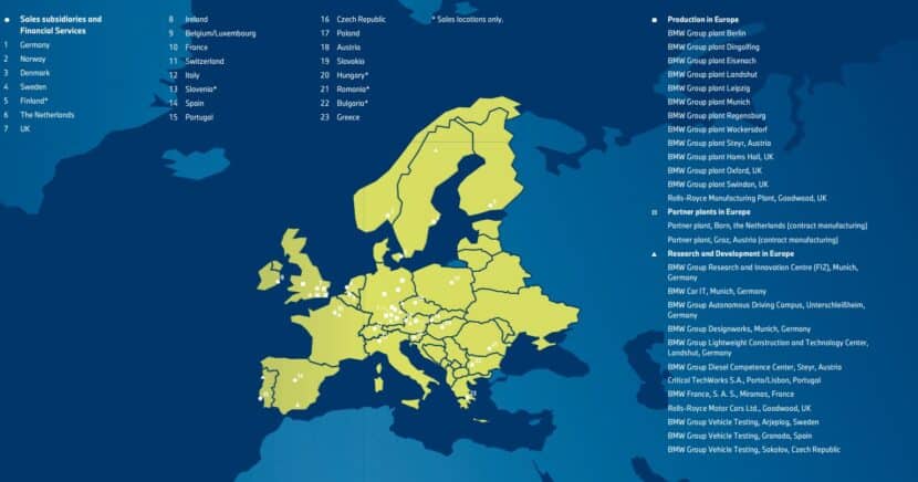 BMW Group factories and partner plants in Europe: