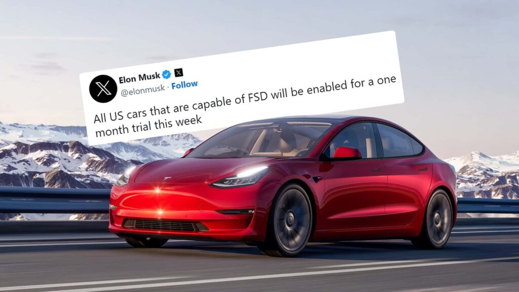 It seems that Tesla would believe that its latest release, FSD Beta v12.3, is so good, that it wants to push the software to all compatible cars in its U.S. fleet for one month at no cost—likely to stimulate sales. CEO Elon Musk confirmed on X that Tesla would begin pushing the trial of FSD to cars at some point this week.