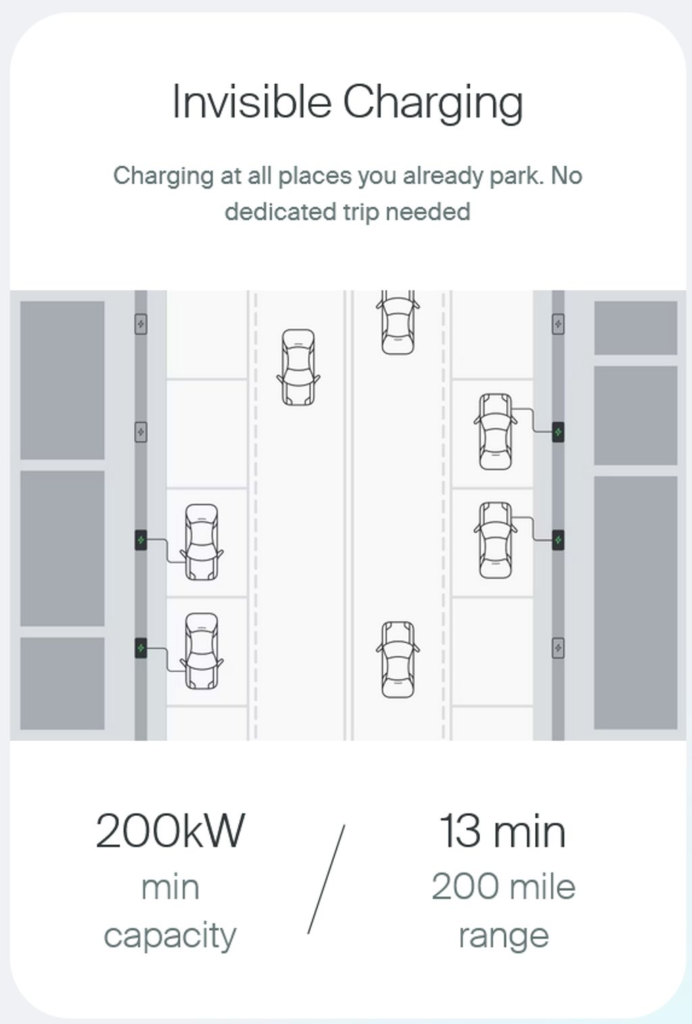 Gravity even says that this charging rate is the equivalent of 960 miles per hour: “These speeds mean chargers can be deployed on metered curbs in the busiest parts of a city, where drivers can charge seamlessly without a dedicated trip. Each DEAP can provide dozens of charge sessions per parking space each day—maximizing turnover and minimizing drivers’ downtime.”