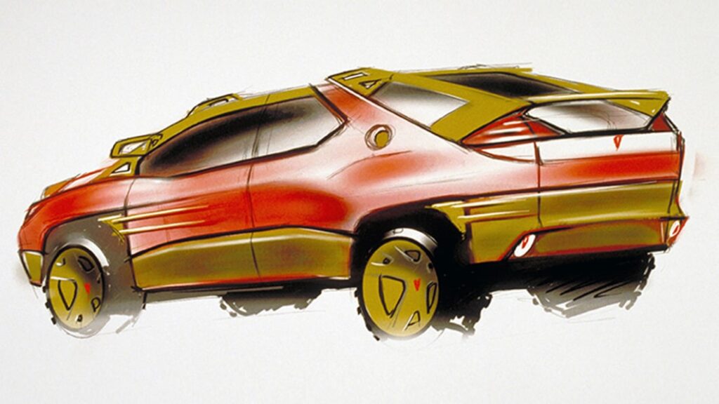 The Autopian has run a three-part series on Pontiac Aztek, a vehicle still known far more as a case study for corporate interference in design than any of its merits. Ex-car designer Adrian Clarke wrote the pieces, Clarke bearing a degree from the Royal College of Art in London, time with J Mays as one of his tutors, and workplace tenure with an OEM we suspect was Jaguar Land Rover. We got to his series in reverse order, stumbling on the last one first. That piece showcases three never-before-seen Aztek design sketches created before and after the first concept, such as the one above, all of which Clarke received from the GM Design Heritage Archive.