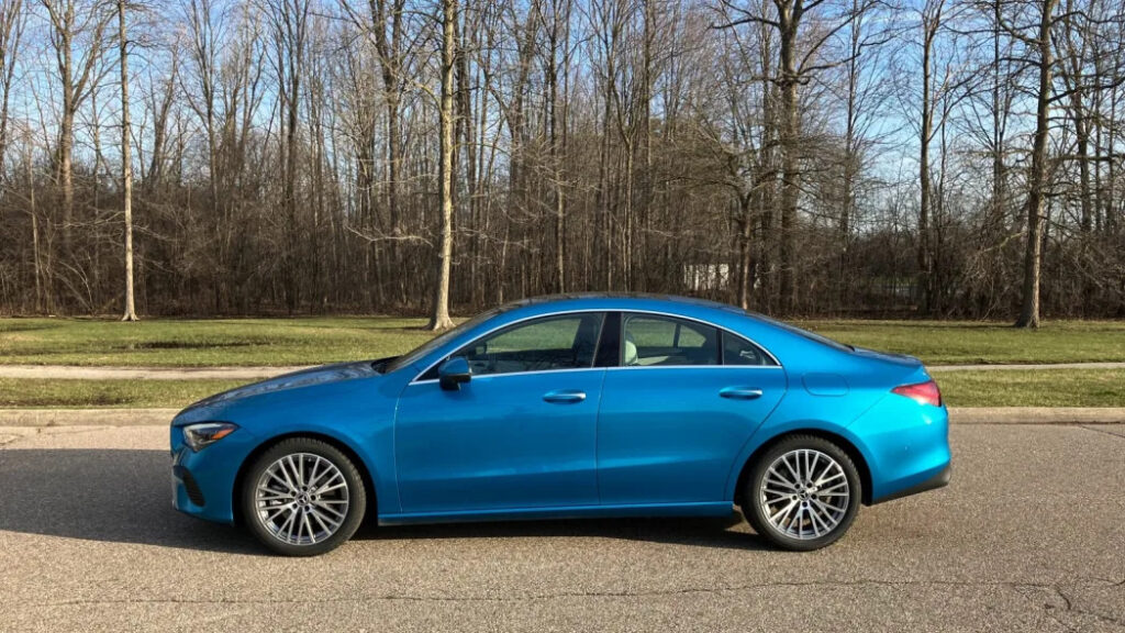 I know, I know — it’s superficial to lead off with a car’s color. Hyper blue is new for the 2024 model year, and this turquoise/teal shade gives this car a presence. I noticed a guy snapping pictures of it in my driveway, and it turned heads at school drop off. It’s like a Miami Vice shade that’s fairly uncommon in the car business, and it pierced the late winter gloom. Doing a little mind reading, I’d guess that most people who saw this CLA 250 had no idea it’s the entry-level Mercedes sedan (the A-Class was discontinued).