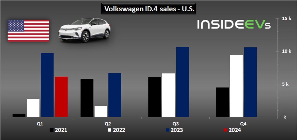 Unfortunately, Volkswagen‘s all-electric car sales significantly decreased during the period, reaching the lowest level since Q2 2022, when imports of the ID.4 from Europe were constrained. In Q1, Volkswagen ID.4 sales amounted to 6,167, which is 37% less than a year ago.