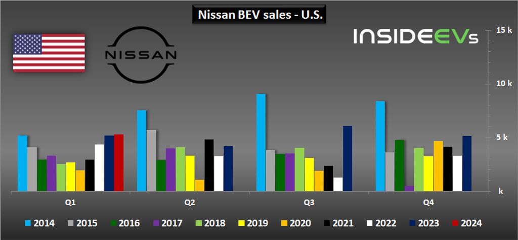 Nissan vehicle sales in the United States during the first quarter of 2024 increased by 8.5% year-over-year to 238,831. Unfortunately, EV sales barely increased this time.
