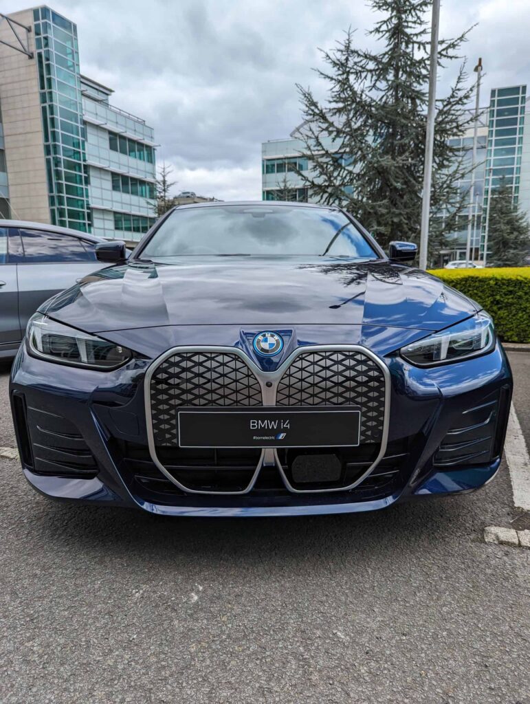 The lesser of the two is dressed to impress in Tanzanite Blue while the M Performance model comes painted in Frozen Pure Grey. Both have updated kidneys compared to the pre-LCI models. The change is more noticeable on the i4 eDrive40. The revised pattern mimics the one already applied to the iX1, iX2, and iX. The hotter i4 has horizontal slats that BMW M seems to prefer on some of its newer performance-focused cars.