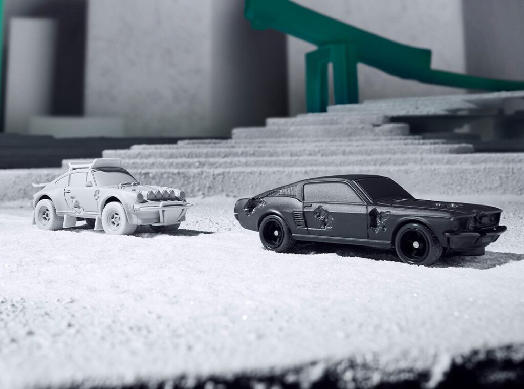 The drop features four limited edition 1:64 scale models, titled “Laps”, which first began with crystalized eroded versions of Hot Wheels’ famous Rodger Dodger and a Porsche 930 Turbo. The newest additions to the Hot Wheels fleet is an adaptation of Daniel Arsham’s personal 1986 Porsche 911 Turbo ‘Safari’ and a 1968 Ford Mustang from the film Bullitt. Beyond the small-scale cars themselves, accessories like keychains and limited prints are also included within the collection to help form the bond between automotive excellence and artistic style. Mark your calendar for May 16 at 9:00am PT, when the new models from Mattel Creations x Daniel Arsham Hot Wheels collection drops on Mattel Creations’ website. Shop all of current Hot Wheels collections by clicking the link below.