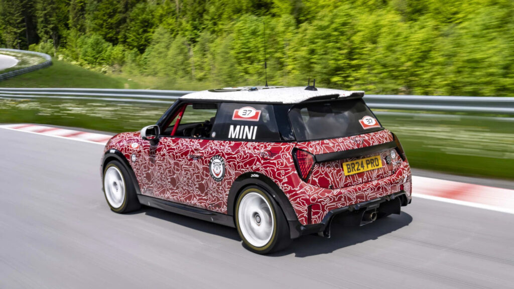 Curious about the next Mini Cooper JCW? Well, here’s a great sneak peek, as Mini just dropped a cache of photos showing it in race guise and wearing a thin layer of camouflage. We’ve already seen the electric John Cooper Works version of the two-door hardtop Mini, but this is the gas-powered variant.