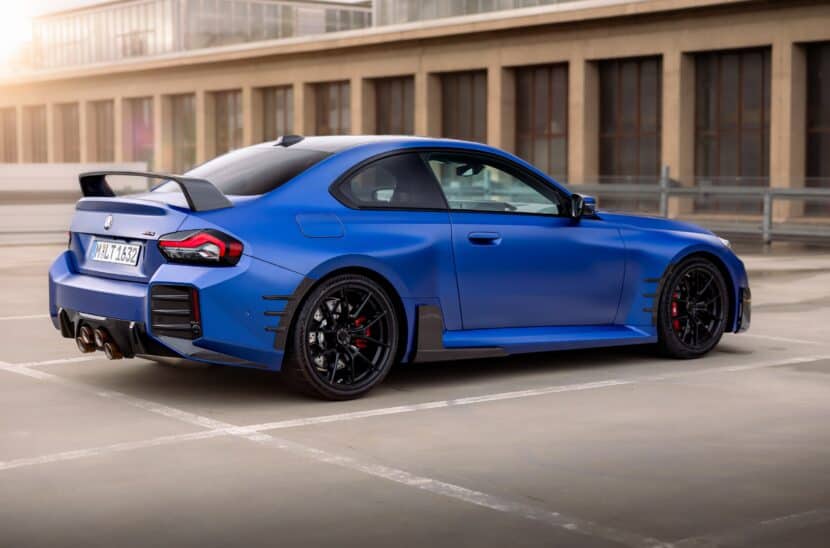 Eagle-eyed readers will also spot another important change over a standard M2 G87. We’re talking about the center-lock forged wheels. You can have them on the M3 and M4 as well, having been originally offered only for the rare 3.0 CSL. The shoes come in matte Jet Black with milled M Performance lettering. BMW fits the lightweight wheels with 275/35 ZR19 front and 285/30 ZR20 rear tires.