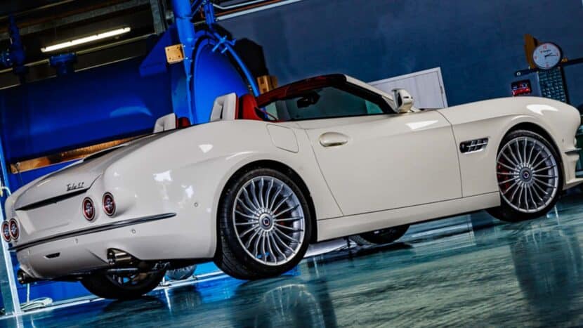 We chatted with the company behind this special project and learned it boasts a full carbon fiber body. Developed in collaboration with ds-Fasertechnik GmbH, the body attempts to mimic the look of BMW’s roadster sold during the late 1950s. Only 15 conversions are planned, each in a different color. However, the cars painted in violet and white have already been sold. Depending on the exterior, the cabin is finished differently.