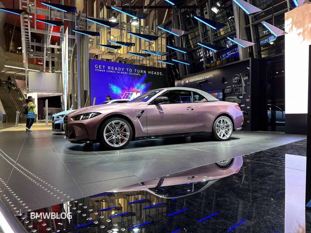 We get to see the M4 Coupe and M4 Convertible blowing 52 candles somewhere on an airfield in China. Both are LCI models with adaptive matrix LED headlights and laser taillights. While the G82 plays it safe with Brooklyn Grey paint, the G83 is a bit more daring with a Velvet Orchid finish. The coupe slides through M wheels conveniently placed 520 centimeters apart. The cabrio blows the 52nd candle with the fumes coming out of the exhaust.