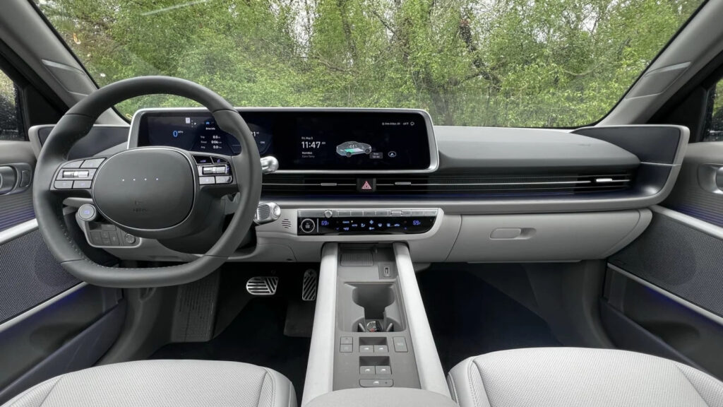 But where the Hyundai truly outshines the Tesla is in some of the more basic refinement and intangible realms. For one thing, the Ioniq feels more polished. It’s quieter going down the road. It doesn’t suffer from the same high-pitched electronic tone that fills the Tesla’s cabin upon acceleration. The Hyundai doesn’t exhibit any rattling or shaking, while the Tesla gives a lot of chatter over even the smallest imperfections. Materials in the Ioniq 6 SE aren’t particularly ingratiating — there’s less to complain about in the Limited — but there’s at least an attempt at some thoughtful design with its funky pixel theme, and it’s pulled off quite well. Additionally, the user interface is much easier to navigate and use, and doesn’t force a learning curve onto the user. There are plenty of features you can control without having to use the touchscreen. There’s also an easily-read instrument panel right in front of you … imagine that.